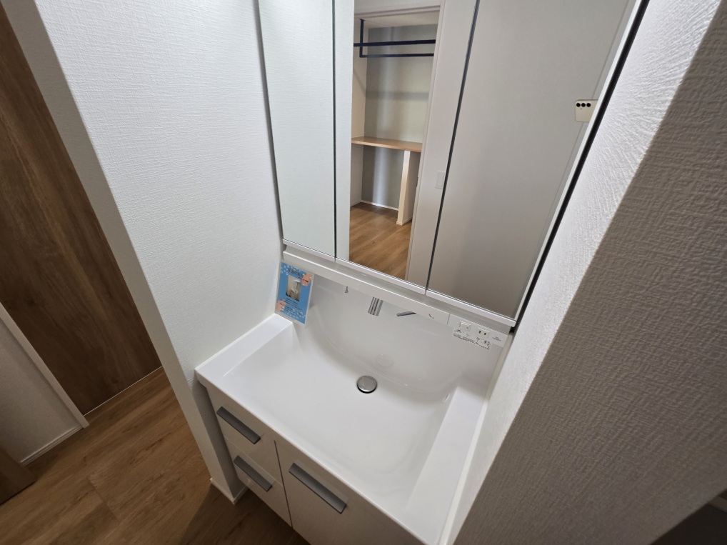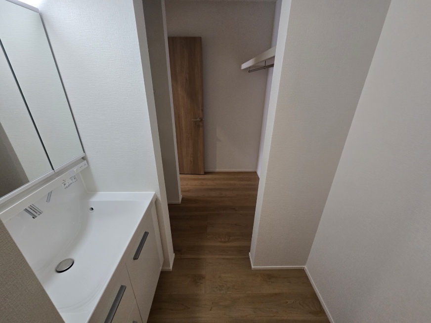 洗面室には、クローゼットのパイプハンガー付きです♪